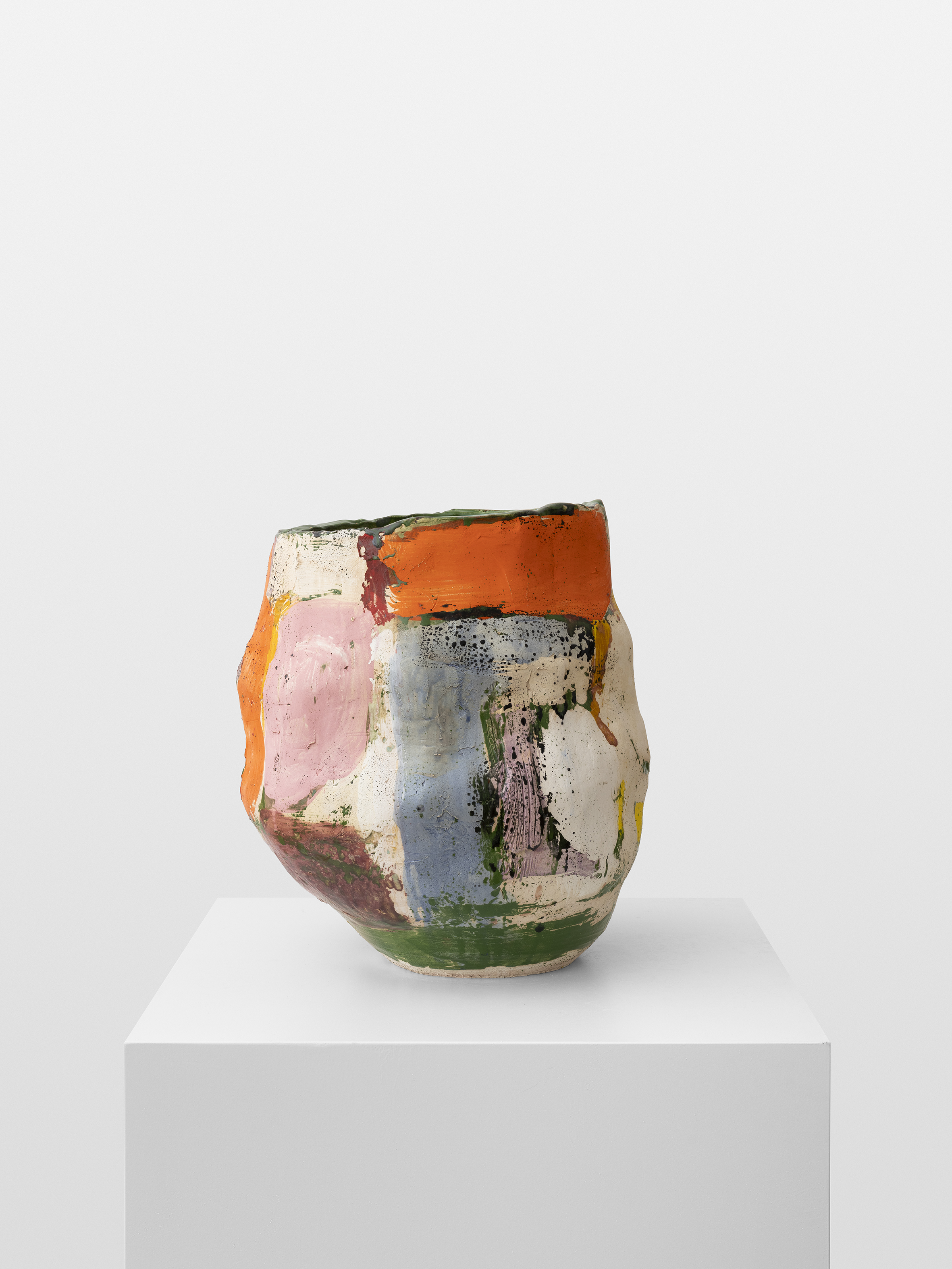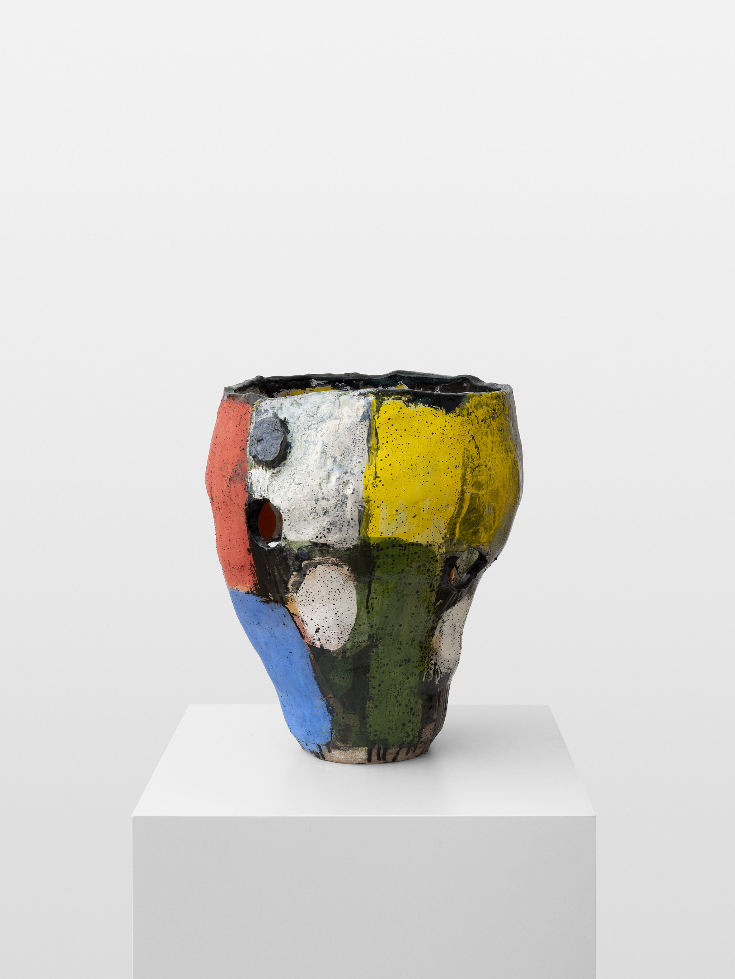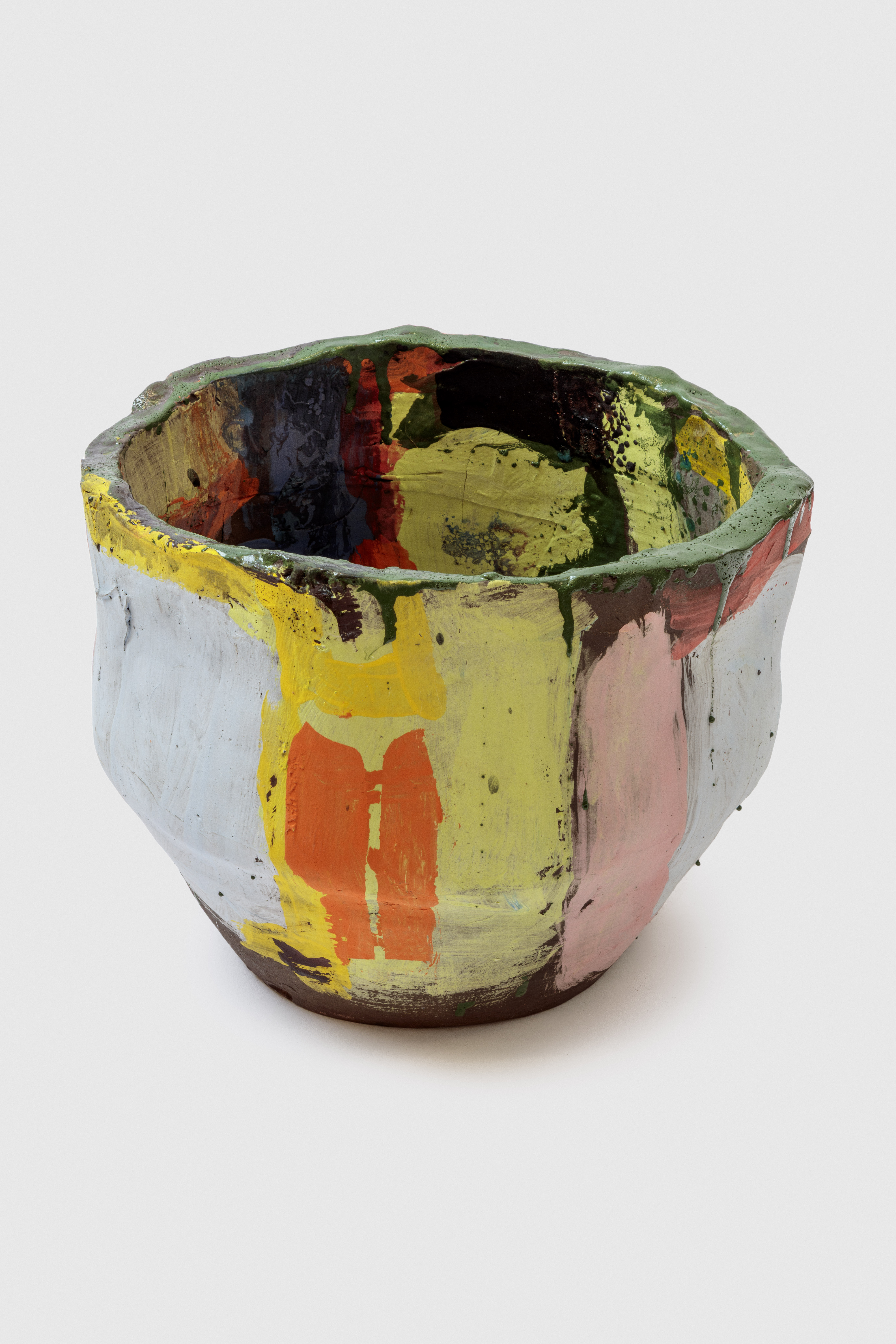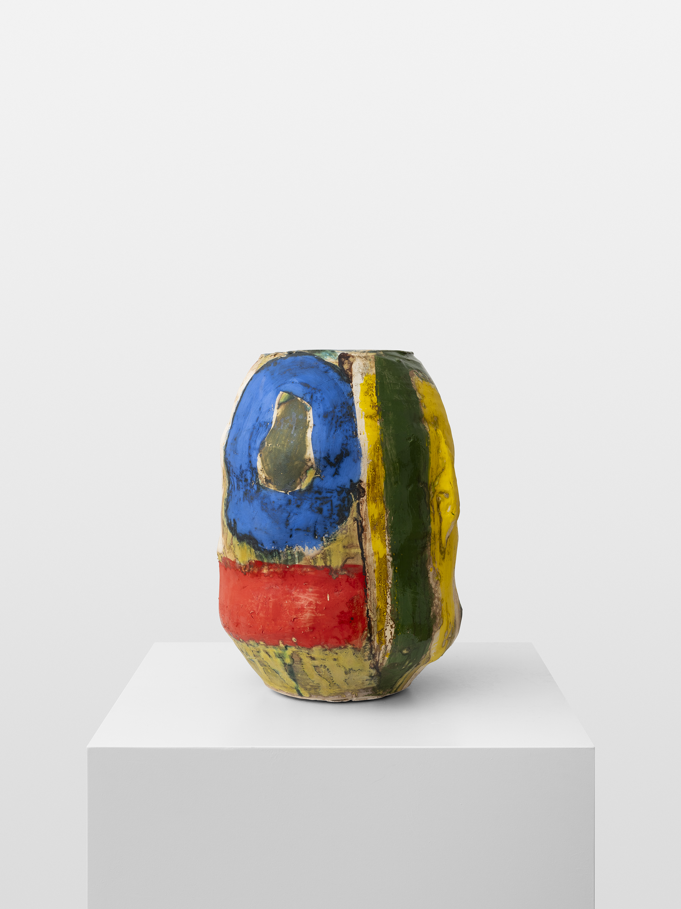 Raw energy and an instinctual sensory relationship to colour and textures is immediately apparent through the bulk of his work, which spans from drawings to paintings, books to ceramics, t-shirts and woodcut prints. His wild blends of ad-hoc and quickly-dashed lines, shapes, opacities, smears layer together in awkward but satisfying compositions. Gestures are as boldly applied as covered up, allowing shapes to recede and reveal themselves simultaneously, in a true polyphony of style.