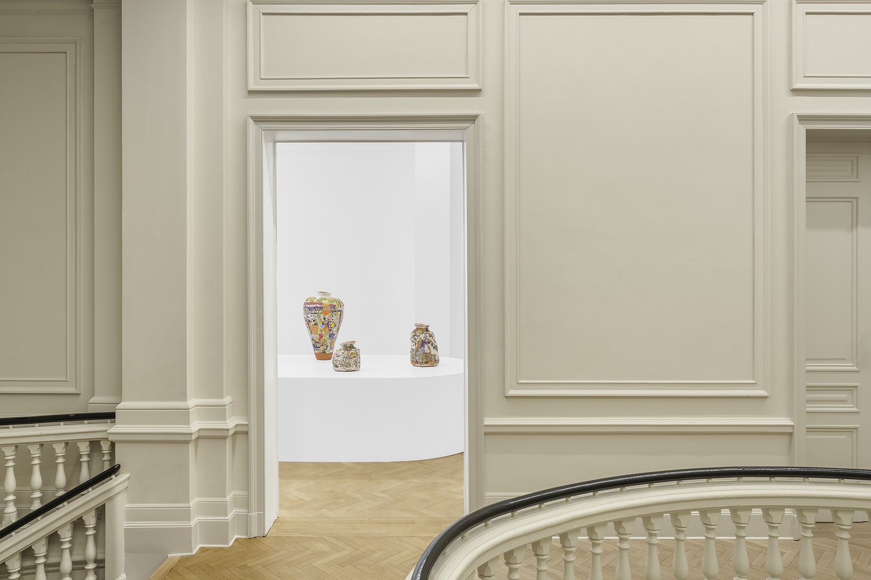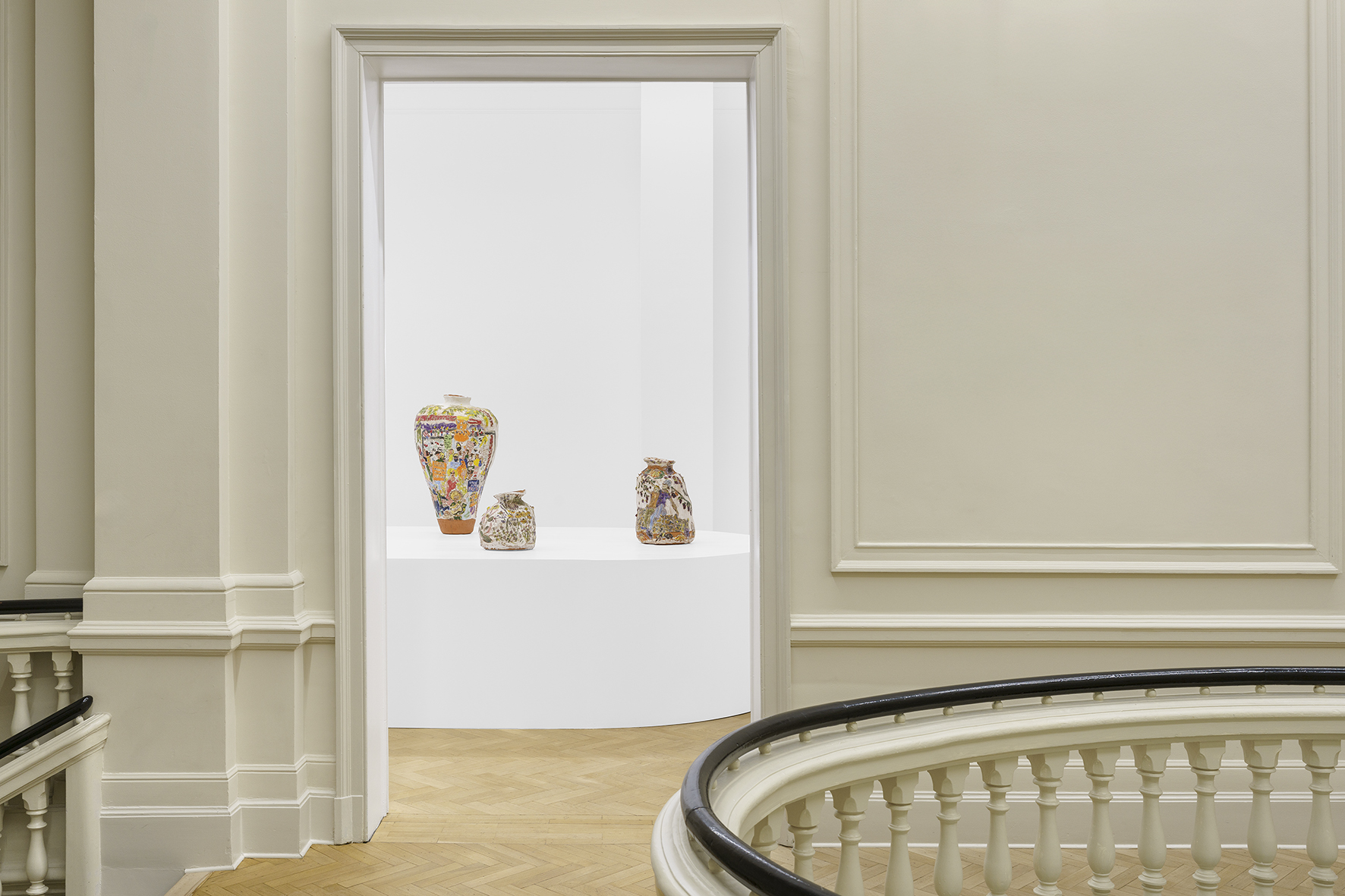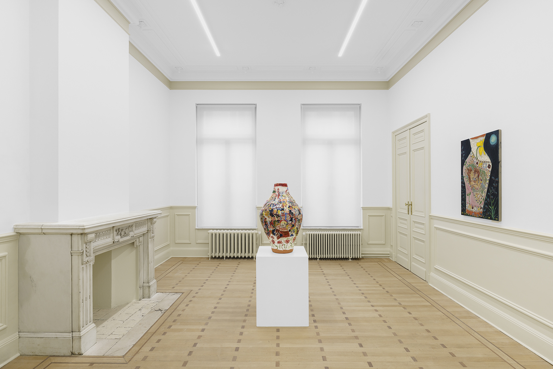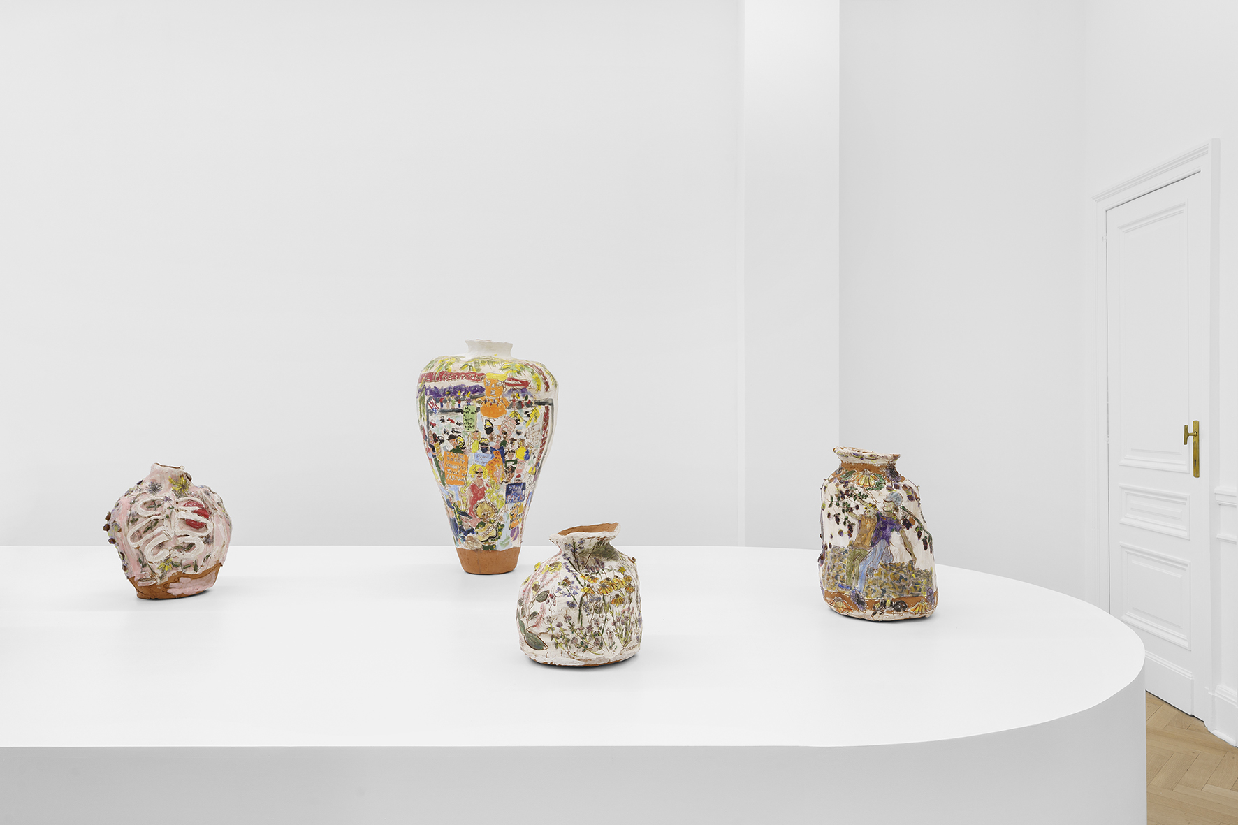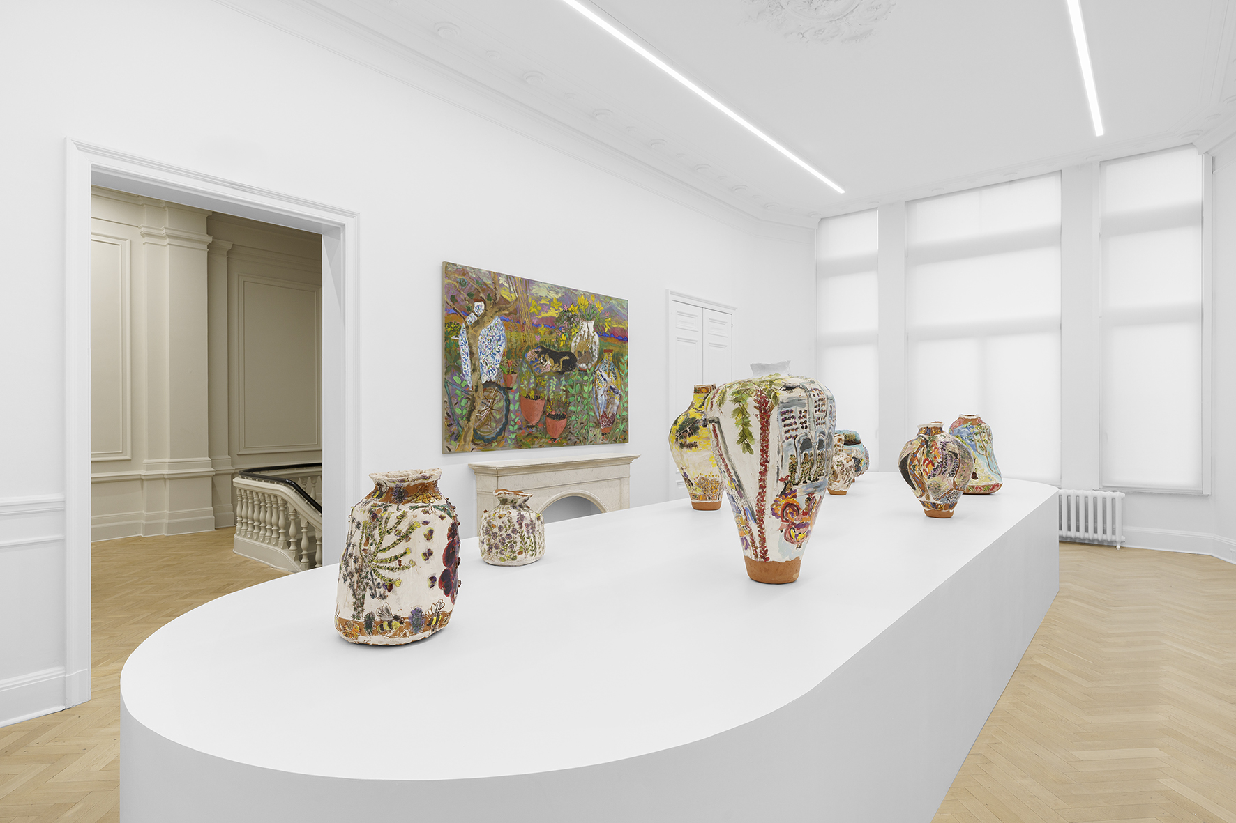 While in Somerset, Rochlin also turned to plein air drawing, painting the surrounding flowers directly onto her pots. These works incorporate references to the exuberant sculptures of Niki de Saint Phalle, whose colorful, jubilant forms add a note of imaginative freedom to Rochlin’s ongoing narrative of vulnerability and strength.