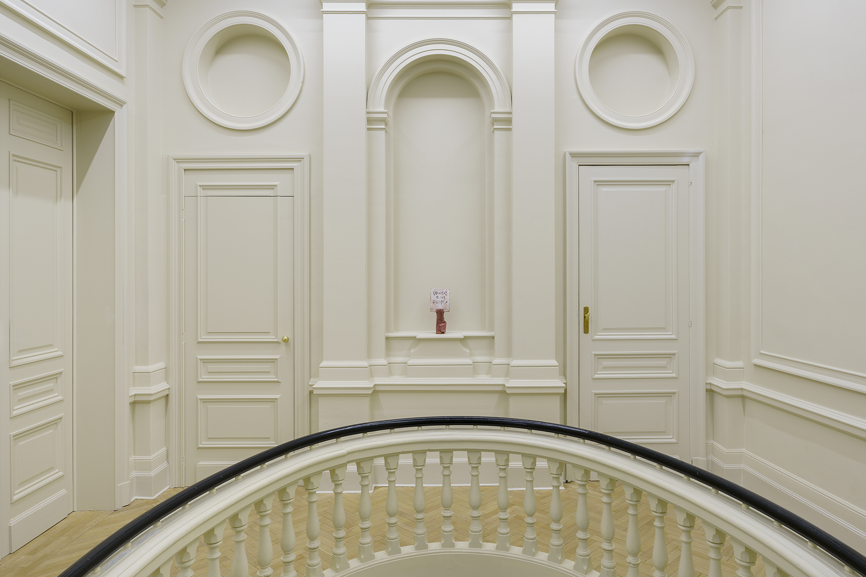 Other works extend this conversation between the personal and political. Two busts of men Rochlin has been involved with appear to leap from the surfaces of vessels, as if fragments of love and memory could no longer be contained. A sculpted hand, referencing Philip Guston, holds a tile with flowers on one side and the words Power to the People on the other — a nod to Guston’s politically charged paintings and a reflection of Rochlin’s own engagement with art’s social movements.